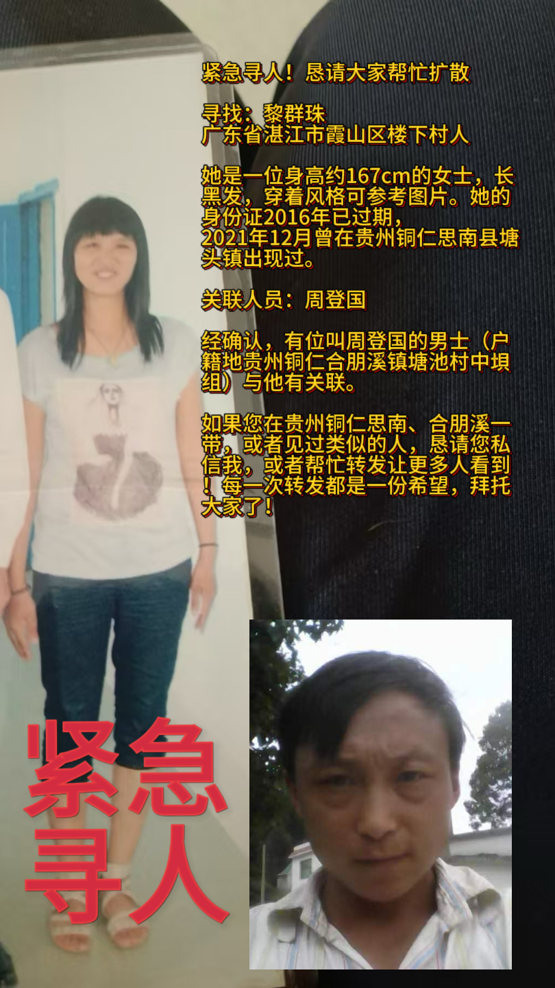 发生经过 :当年她离婚回来,就在村口认识一个贵州过来务工的男子,这个照片之前在微信有发过给我们,我们已报警采血,警方和我们说该男子户籍在贵州铜仁合朋溪镇塘池村中垻组,叫周登国,后面没有信息了